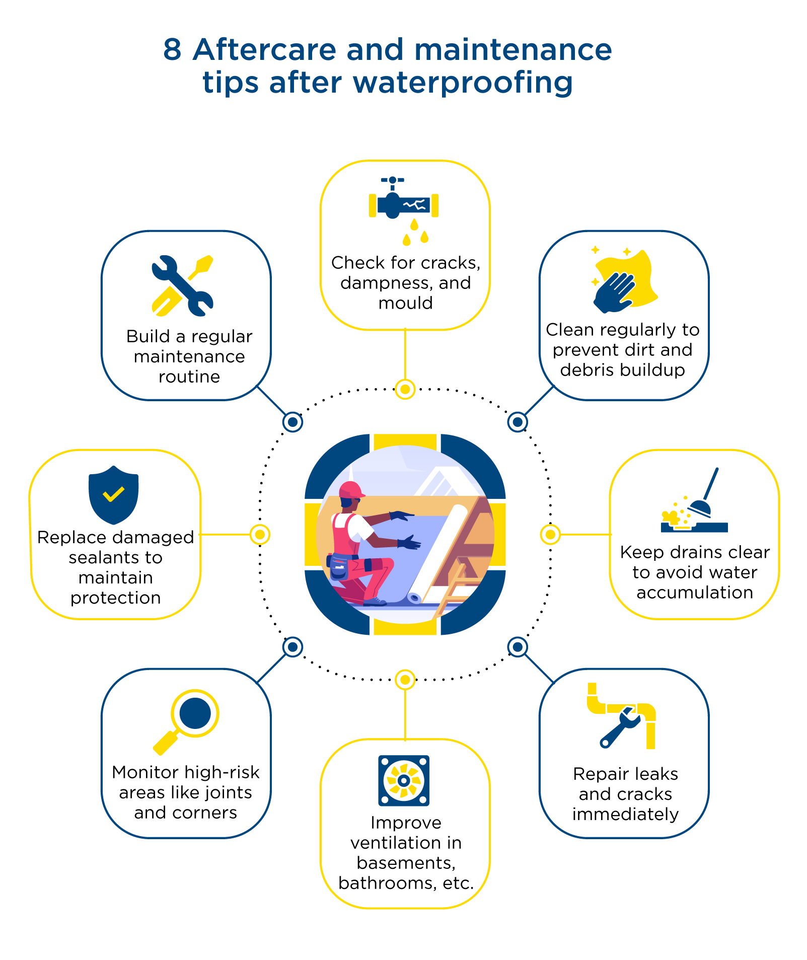 - Understand maintenance and aftercare needs to keep the waterproofing intact